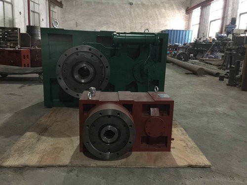 ZLYJ減速機是為了塑料螺桿擠出機配設計的高精度硬齒面帶推力的傳動部件。產品設計采用了JB/T8853-2001所規定的各項技術規范。其特點是齒輪和軸類件采用了高-強度合金鋼。齒輪經滲碳、淬火、廉齒工藝加工。齒輪精度為GB10095-886級。齒面硬度HRC54-62.在空心輸出軸前端配有超規格的推力軸承,承受螺桿的工作軸向力。軸承和油封等主標準皆采用國內優良產品,也可按用戶需要,配裝進口產品。整機具有體積小.承載能力高、傳動平穩、噪聲低、效率高等特點。產品性能已達到國際先進水平。可替代同類型進口產品使用。本系列產品中的規格和傳動比為現有用戶的常用數據。用戶在選用時,可將桿的實際傳動扭矩與許用輸出扭矩為準選型。若需與橡膠擠出機配妻,因橡膠擠出機沖擊力較塑料強.請用戶提出具體技術參數.向我廠咨詢再確定選型。
